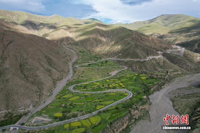 2025年7月15日,航拍西藏自治區(qū)拉薩市曲水縣境內(nèi)的崗巴拉山盤山公路。(無人機畫面)中新社記者 江飛波 攝