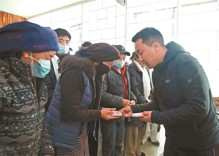 圖為工作人員為群眾發(fā)放慰問(wèn)金。記者 格桑倫珠 劉琳琳 攝