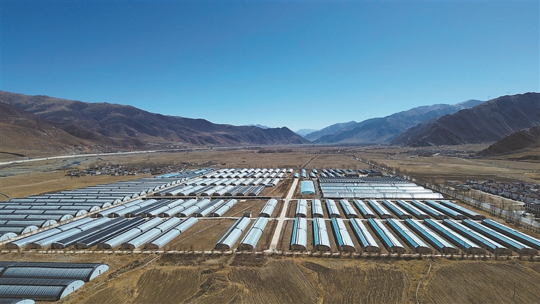 圖為3月8日拍攝的墨竹工卡縣現(xiàn)代農(nóng)業(yè)示范園(無(wú)人機(jī)照片)。