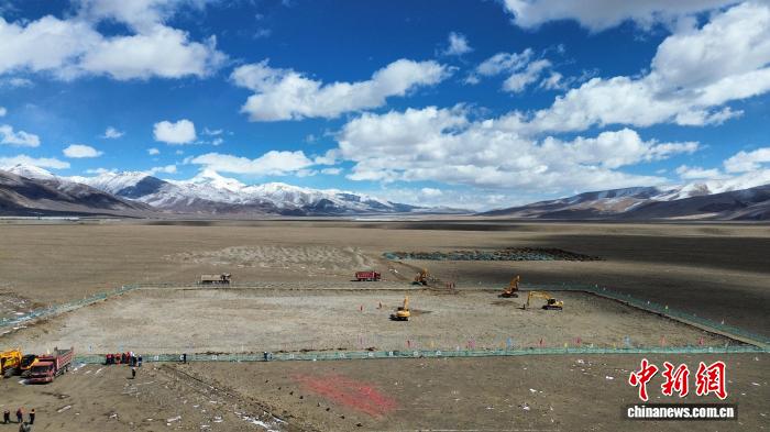 4月6日,全球海拔最高的槽式光熱電站——中廣核西藏烏瑪塘50兆瓦光熱項(xiàng)目在拉薩市當(dāng)雄縣烏瑪塘鄉(xiāng)正式開(kāi)工建設(shè),圖為項(xiàng)目開(kāi)工現(xiàn)場(chǎng)。(中國(guó)廣核集團(tuán)供圖)
