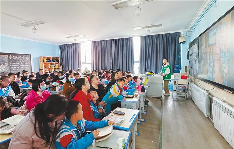 圖為該校師生和家長(zhǎng)一同觀看普法教育視頻。記者 白瑪澤旺 攝