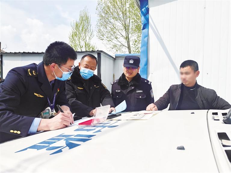 執(zhí)法人員檢查現(xiàn)場。