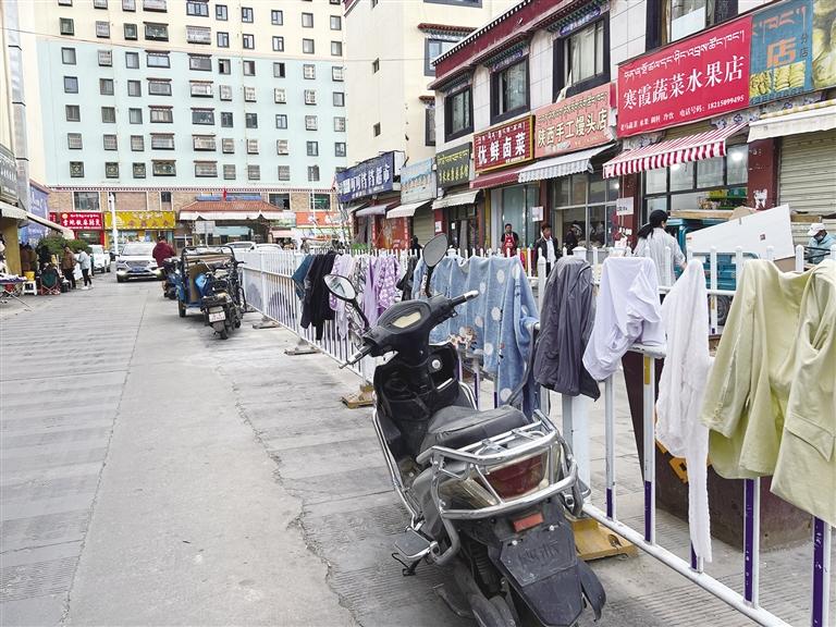6月6日,記者來(lái)到和美家園小區(qū)?!拔易∵M(jìn)來(lái)5年多了,這個(gè)南門兩側(cè)停車問(wèn)題反映很多次了。本來(lái)挺寬的一條路,中間被護(hù)欄隔開(kāi),結(jié)果越來(lái)越擁堵?!边_(dá)瓦次仁無(wú)奈地說(shuō)。記者順著達(dá)瓦次仁所指的方向看去,只見(jiàn)小區(qū)南門被護(hù)欄隔開(kāi),車輛實(shí)行右進(jìn)左出,隔開(kāi)后的道路原本還算寬闊,但實(shí)際上道路內(nèi)側(cè)被商販占道經(jīng)營(yíng),外側(cè)被商販的電動(dòng)車和小貨車占據(jù),行人和車輛通行受到影響。