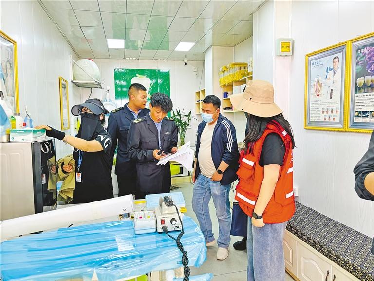 近日,沖賽康社區(qū)依托社區(qū)網(wǎng)格化管理優(yōu)勢,對轄區(qū)內(nèi)牙科診所進(jìn)行了全面的摸底排查,重點核查了牙科診所是否具備合法經(jīng)營資質(zhì)、診所備案憑證、從業(yè)人員是否持有有效執(zhí)業(yè)證書等關(guān)鍵信息。 對于發(fā)現(xiàn)的問題,社區(qū)上報并協(xié)助執(zhí)法人員進(jìn)行現(xiàn)場查處,依法依規(guī)進(jìn)行查封取締。執(zhí)法人員深入牙科診所,逐一檢查其營業(yè)資質(zhì)、醫(yī)務(wù)人員執(zhí)業(yè)資格、醫(yī)療設(shè)備和衛(wèi)生條件等。在檢查中,發(fā)現(xiàn)23家牙科診所未辦理診所備案憑證等相關(guān)證件,并對23家無證牙科診所下發(fā)《衛(wèi)生行政執(zhí)法文書》進(jìn)行停業(yè)整頓。 圖為執(zhí)法人員在牙科診所檢查。 記者 央金 攝