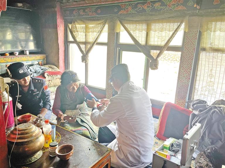 珠峰邊境派出所民警上門為駐地老人檢查身體。(本文配圖由本報通訊員 景浩 本報記者 楊子彥 攝)
