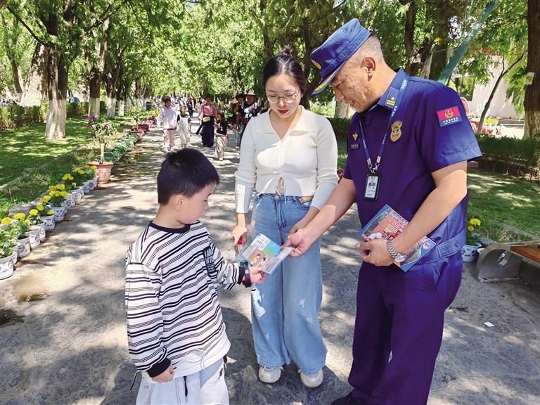 眼下,拉薩市不僅迎來旅游高峰,“賽馬節(jié)”“音樂節(jié)”“圣山林卡”“啤酒節(jié)”等各類節(jié)慶活動也密集舉辦,旅游村、農(nóng)牧區(qū)及各景點人流高度集中,消防安全風險隨之攀升。對此,各縣區(qū)講師團通過設(shè)立“雪域藍焰·服務(wù)驛站”、啟用“流動宣傳車”等方式,在涉旅場所重點區(qū)域發(fā)放消防安全手冊與宣傳品,結(jié)合景區(qū)火災(zāi)案例講解防火要點,提醒游客群眾平安出行,時刻關(guān)注消防安全。