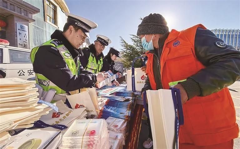 “您好,請看看這份資料,騎電動車一定要佩戴好安全頭盔?!薄皫煾?,冬季路面易滑,行車請保持安全距離?!痹诶_經(jīng)濟(jì)技術(shù)開發(fā)區(qū)陽光新城小區(qū)附近,經(jīng)開區(qū)交警大隊(duì)的民警們正忙碌地布置宣傳展臺,印有藏漢雙語的宣傳折頁、實(shí)用又貼心的交通安全提示小禮品、交通安全模擬體驗(yàn)……吸引了不少過往市民駐足觀看。民警們一邊發(fā)放宣傳資料,一邊耐心細(xì)致地講解交通安全知識,邀請市民佩戴酒駕模擬眼鏡嘗試行走,直觀感受酒后駕駛的眩暈感,了解酒駕的危害。美團(tuán)外賣騎手趙海龍告訴記者:“我們天天在路上跑,安全才是最快的配送速度。以后我不僅自己會遵守交通規(guī)則,還會提醒身邊的同行,自覺遵守道路交通法律法規(guī),做到安全文明出行?!?/p>