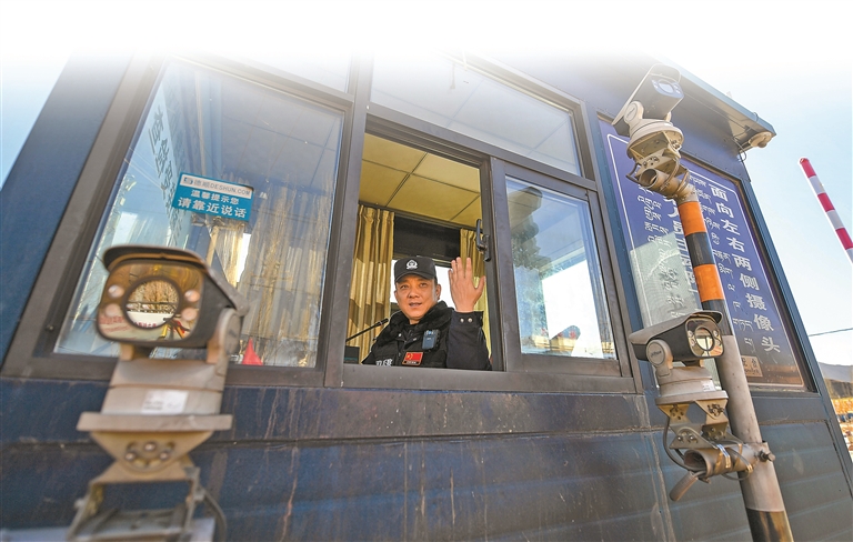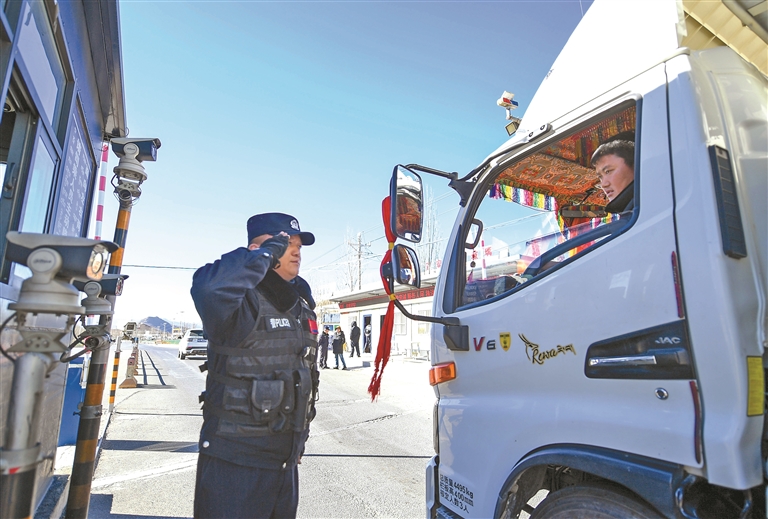 “請(qǐng)降下車窗,面對(duì)攝像頭接受檢查?!薄伴_慢點(diǎn),注意安全?!睓z查崗?fù)?nèi),次旦加布一邊察看窗外的汽車,一邊仔細(xì)比對(duì)著電腦系統(tǒng)中的信息。