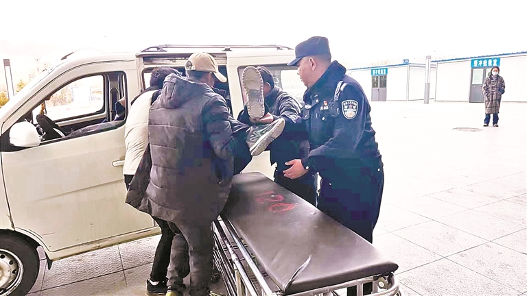 去年3月,檢查站接到緊急求助:一名群眾修建房屋時(shí)從高處墜落,生命垂危,急需送醫(yī)。警情即是命令,時(shí)間就是生命。執(zhí)勤民警立刻啟動(dòng)應(yīng)急機(jī)制,拉響警笛、亮起警燈,在前方開辟出一條生命通道。最終,僅用5分鐘便將傷者安全護(hù)送至日喀則市人民醫(yī)院,搶回了寶貴的救治時(shí)間。