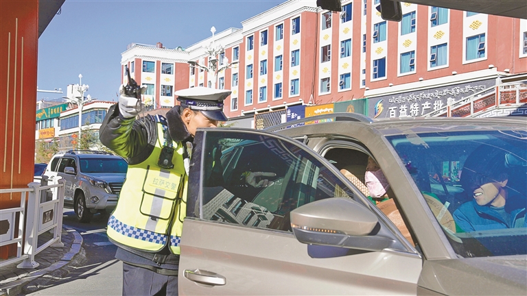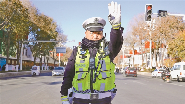 圖為拉薩交警定點(diǎn)值守中。記者 鹿麗娟 攝