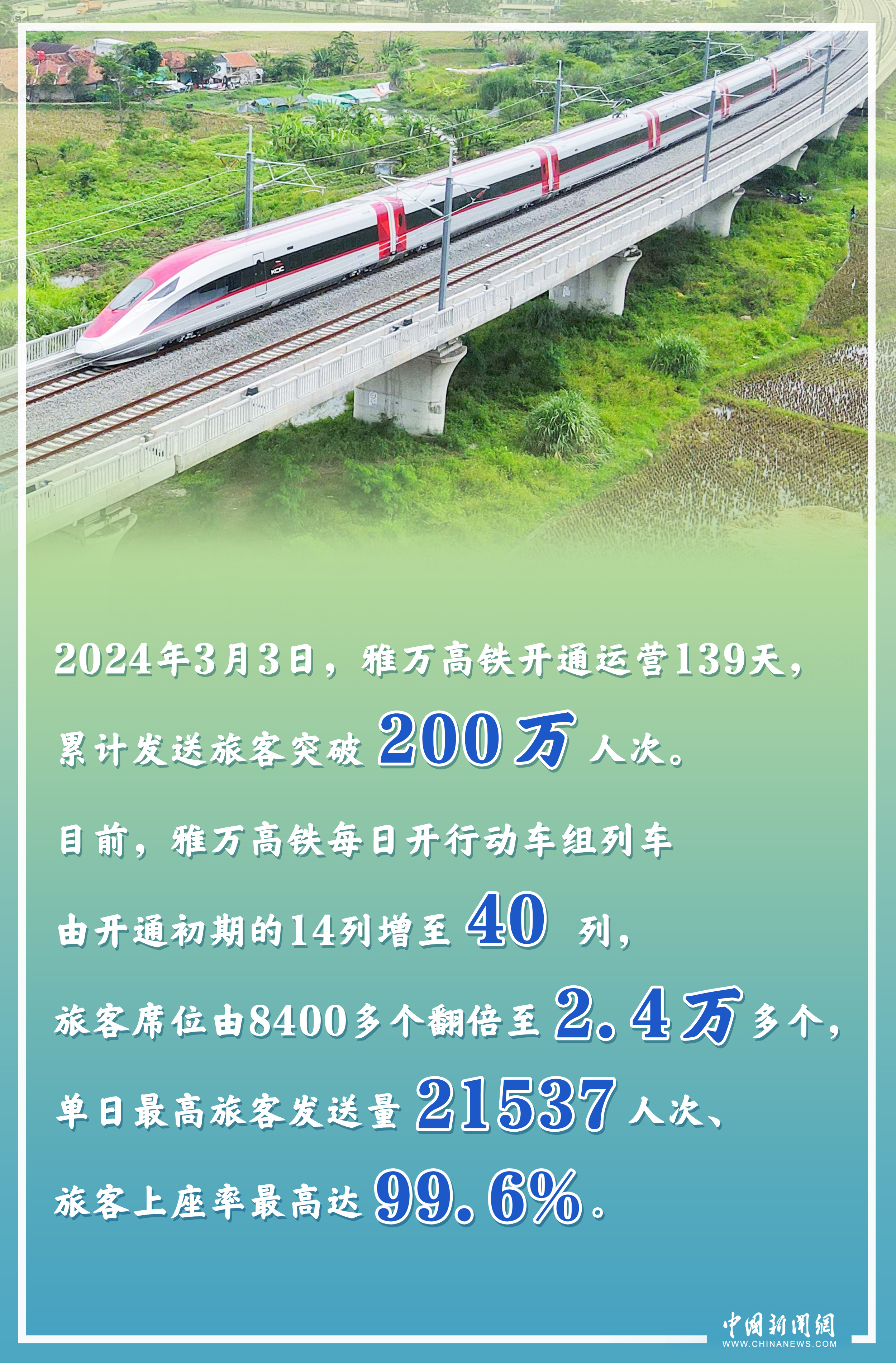 作為中國與印尼共建“一帶一路”的“金字招牌”,截至當地時間2024年3月3日,印尼雅萬高鐵累計發(fā)送旅客突破200萬人次,單日旅客上座率最高達99.6%,客流持續(xù)保持高位態(tài)勢。