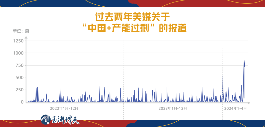 檢索美媒同時提及“中國”“產(chǎn)能過?!钡膱蟮?,從數(shù)量變化中,可以看出,所謂中國“產(chǎn)能過?!钡脑掝},從2022年就已經(jīng)開始。