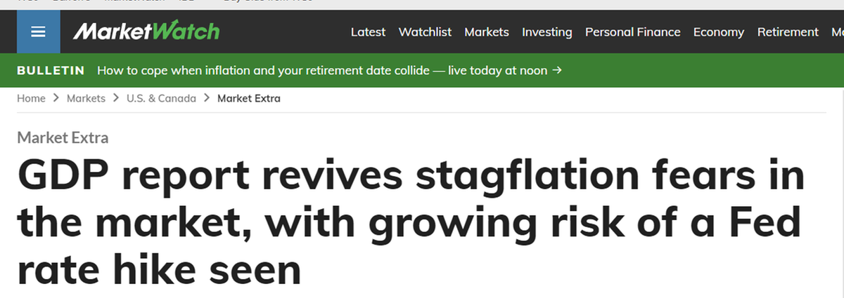 美國財經(jīng)新聞網(wǎng)站市場觀察25日報道稱,近期的美國經(jīng)濟數(shù)據(jù)給交易員、經(jīng)濟學(xué)家和其他人士敲響了警鐘,他們開始表達(dá)對這個世界最大經(jīng)濟體或?qū)⑾萑霚浀膿?dān)憂。滯脹是通脹上升和經(jīng)濟增長放緩的結(jié)合,被美聯(lián)儲政策制定者視為所有可能結(jié)果中最糟糕的,因為它比經(jīng)濟衰退更難解決。