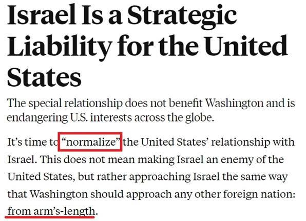 然而,美國《外交政策》雜志刊文分析,以色列如今已成為美國的戰(zhàn)略負(fù)擔(dān),現(xiàn)在到了推動(dòng)美國同以色列關(guān)系"正?;?的時(shí)候了。美國對(duì)待以色列,要像其對(duì)待任何其他國家一樣:保持距離。