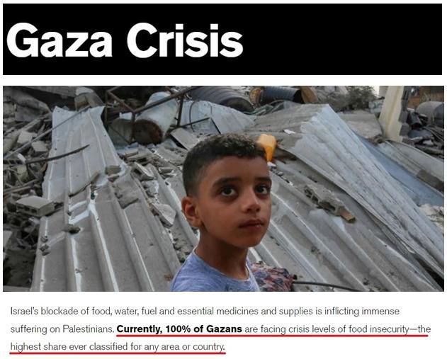 而根據(jù)國際救援委員會(huì)(IRC)的統(tǒng)計(jì),目前,加沙的200多萬巴勒斯坦民眾每天都面臨危險(xiǎn)和災(zāi)難。以色列對(duì)糧食、水、燃料和基本藥品及用品的封鎖正在給巴勒斯坦人造成巨大痛苦。目前,100%的加沙人面臨著糧食不安全的危機(jī),達(dá)到世界上所有國家和地區(qū)有記錄以來的最高水平。