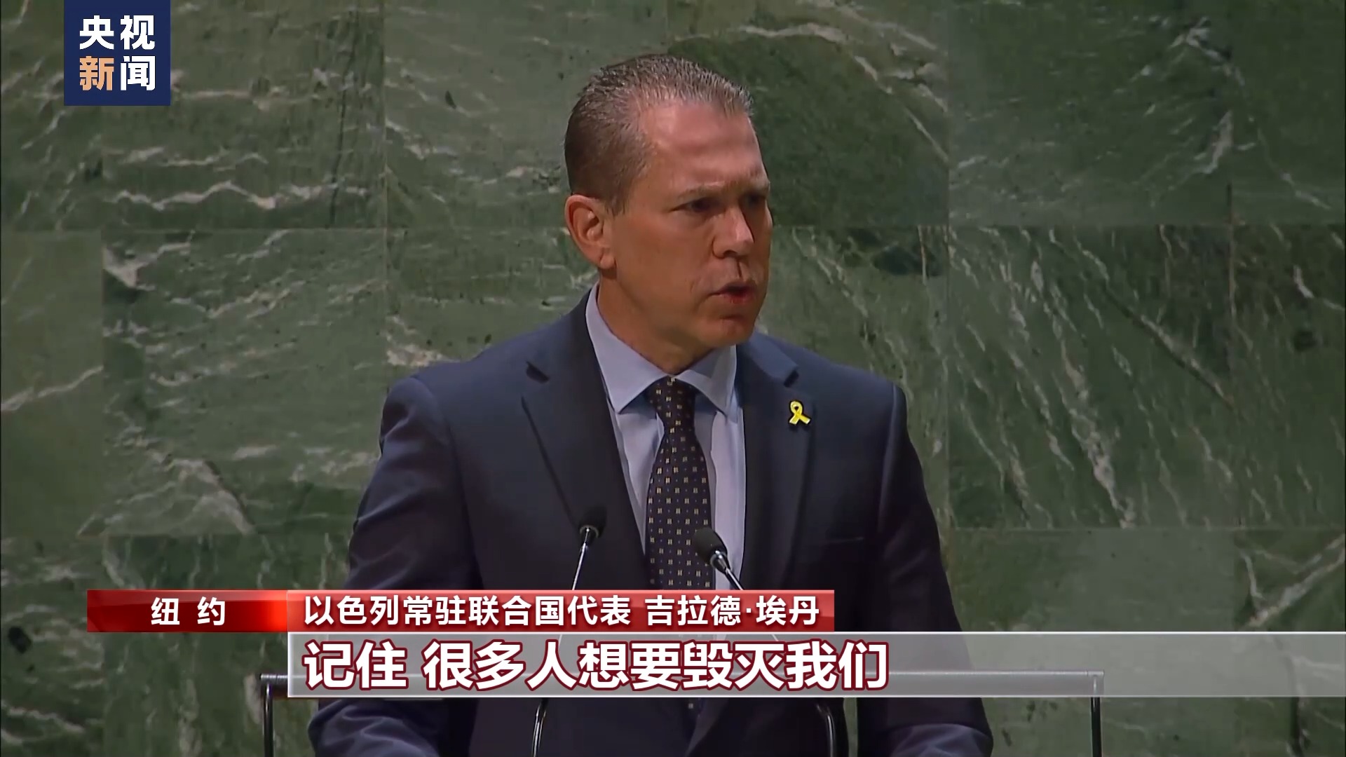以色列常駐聯(lián)合國代表 吉拉德·埃丹:記住,很多人想要?dú)缥覀儭?/p>