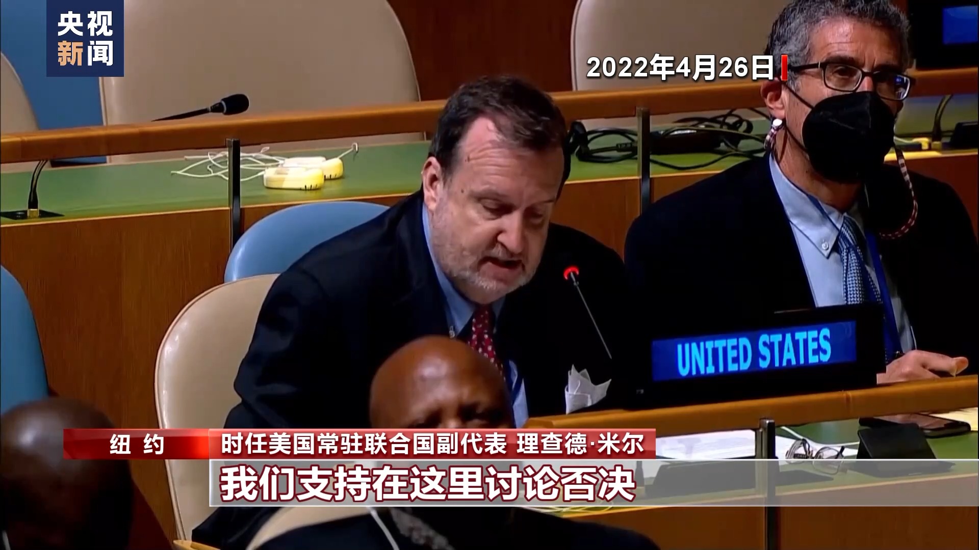 時(shí)任美國常駐聯(lián)合國副代表 理查德·米爾:如果大會因?yàn)橄嗤h題已經(jīng)召開了緊急特別會議,就不再舉行否決解釋會議。不管聯(lián)合國大會是否召開了緊急特別會議還是別的會議,我們支持在這里討論否決,如果美國投了否決票,我們樂于參與。