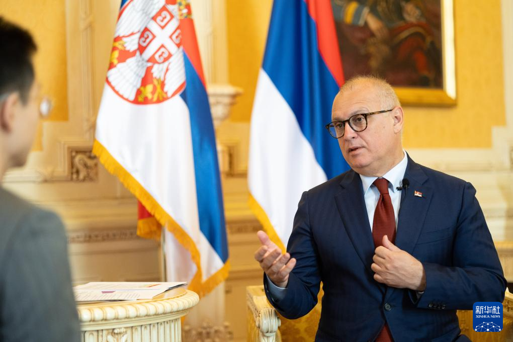 5月2日,在塞爾維亞貝爾格萊德,塞爾維亞建設(shè)、交通和基礎(chǔ)設(shè)施部長韋西奇接受新華社記者專訪。新華社記者 李京 攝