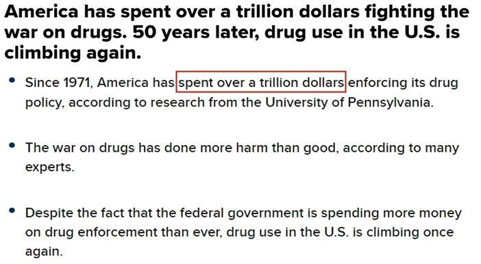 早在《聯(lián)邦管制物質(zhì)法案》出臺后的上世紀(jì)70年代,美國政府就曾高調(diào)對毒品“宣戰(zhàn)”,至今已為“禁毒”花了上萬億美元。