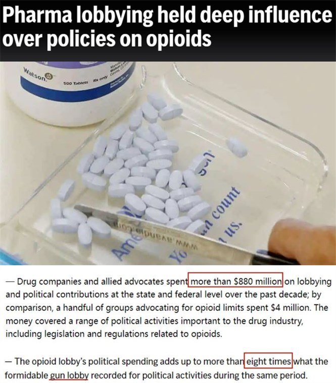 據(jù)美媒披露,為了阻止藥劑師更謹(jǐn)慎地開具處方、推動(dòng)藥房快速售藥,阿片類藥物制造商和經(jīng)銷商在近十年內(nèi)共花費(fèi)了8.8億美元用于“打通關(guān)系”,比美國槍支游說集團(tuán)花的錢還要高8倍。