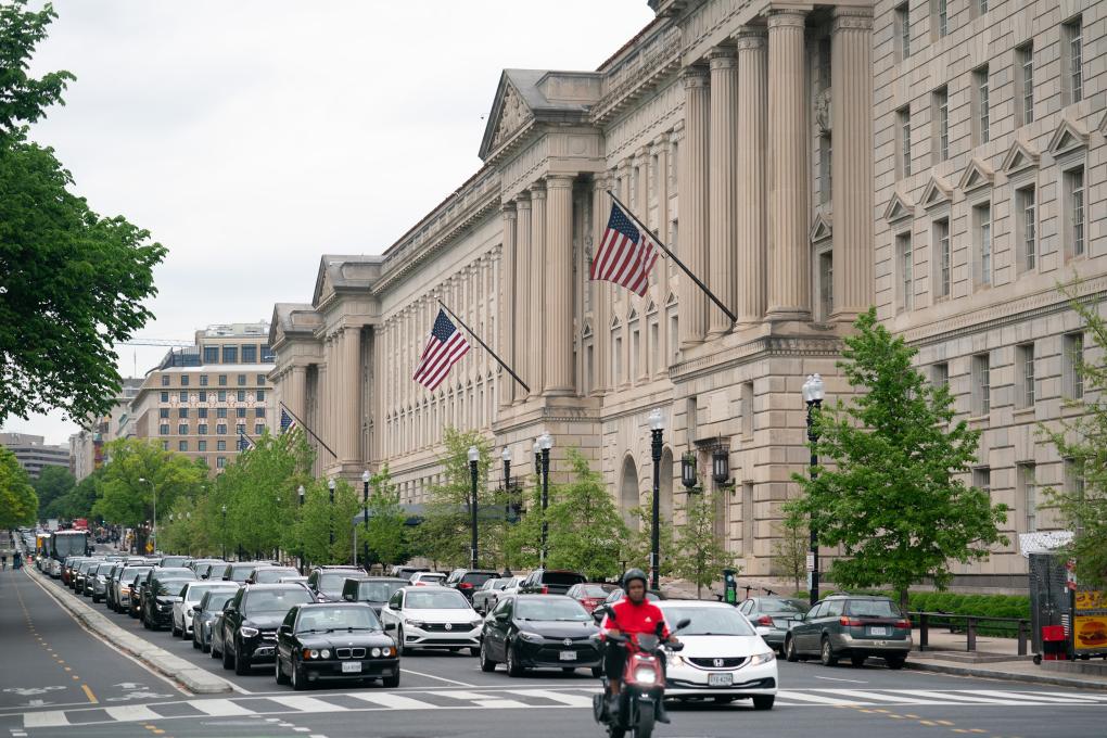 這是4月25日在美國首都華盛頓拍攝的商務(wù)部大樓。新華社記者劉杰攝