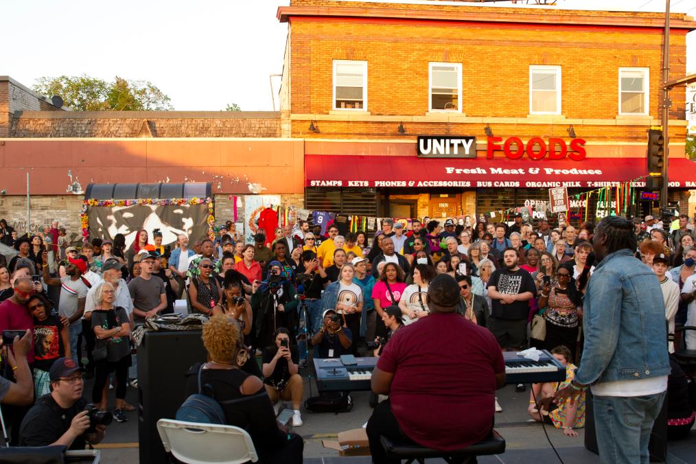 2023年5月25日,在美國明尼蘇達(dá)州明尼阿波利斯市,人們參加哀悼活動,紀(jì)念弗洛伊德遇害三周年。2020年5月25日,“無法呼吸”的非洲裔男子喬治·弗洛伊德死于白人警察膝下,成為美國人權(quán)史上的恥辱一頁。新華社發(fā)(比利·布里格斯攝)