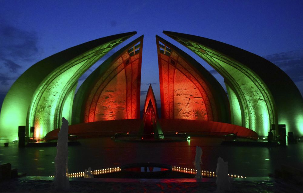 2023年7月29日,巴基斯坦首都伊斯蘭堡的巴基斯坦紀(jì)念碑亮起中巴兩國(guó)國(guó)旗顏色的燈光,慶祝中巴經(jīng)濟(jì)走廊啟動(dòng)十周年。新華社發(fā)