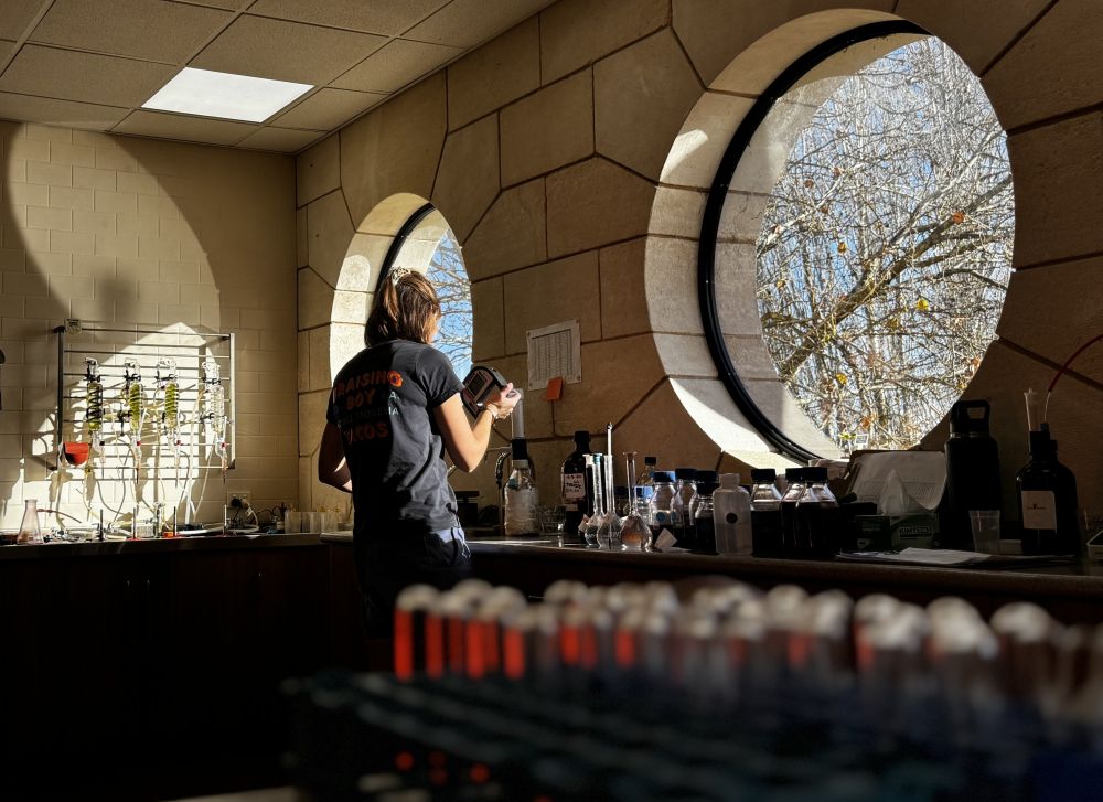 5月28日,澳大利亞庫(kù)納瓦拉瑞馬酒莊員工在實(shí)驗(yàn)室檢測(cè)葡萄酒。