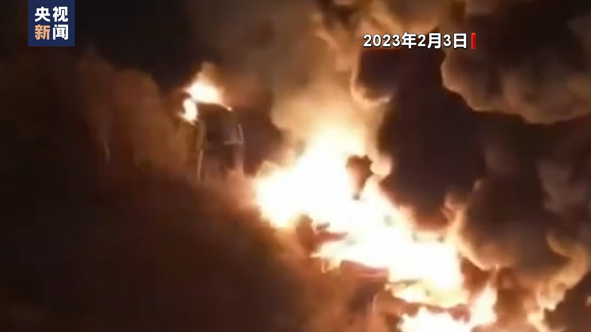 2023年2月3日,諾??四戏借F路公司一列運有危險化學品的貨車,駛經俄亥俄州東巴勒斯坦鎮(zhèn)時發(fā)生事故,包括5節(jié)裝運氯乙烯等有害氣體車廂在內的50節(jié)車廂脫軌或損壞。應急人員對車載有毒氣體進行“受控釋放”和燃燒,這一系列操作導致大量有毒化學品進入空氣、水和土壤,釀成環(huán)境危機。