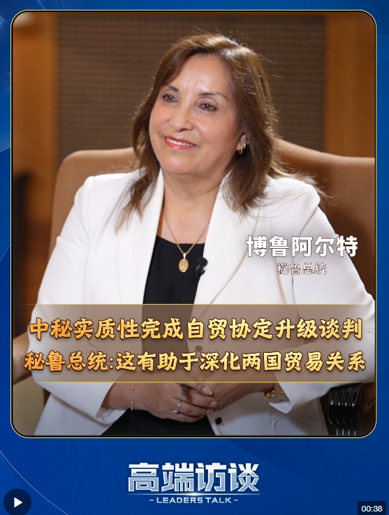 6月28日,中國與秘魯宣布實質(zhì)性完成自貿(mào)協(xié)定升級談判。秘魯總統(tǒng)博魯阿爾特在接受總臺《高端訪談》專訪時表示,中國是秘魯?shù)谝淮筚Q(mào)易伙伴,兩國新簽署的諒解備忘錄,將有助于深化兩國貿(mào)易關系,進一步加強雙邊關系。