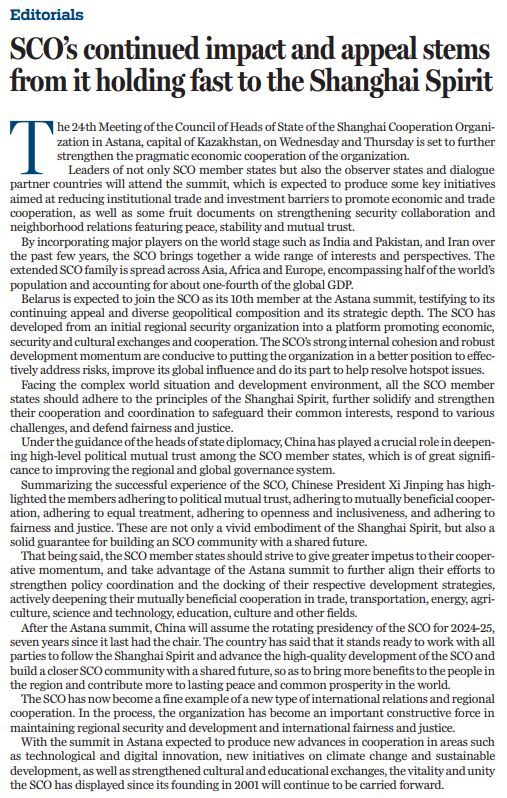 本文譯自《中國日報》7月3日社論