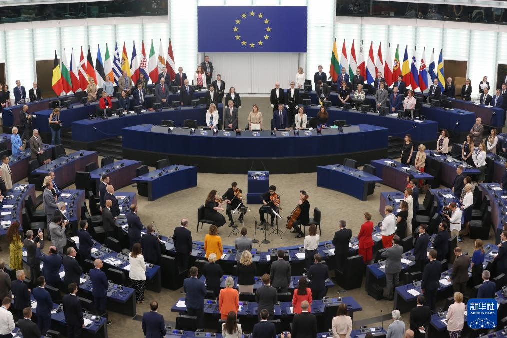 這是7月16日在法國斯特拉斯堡拍攝的新一屆歐洲議會第一次全體會議現場。歐洲議會16日在法國斯特拉斯堡召開全會,馬耳他籍的蘿伯塔·梅措拉經投票再次當選歐洲議會議長。新華社記者 趙丁喆 攝