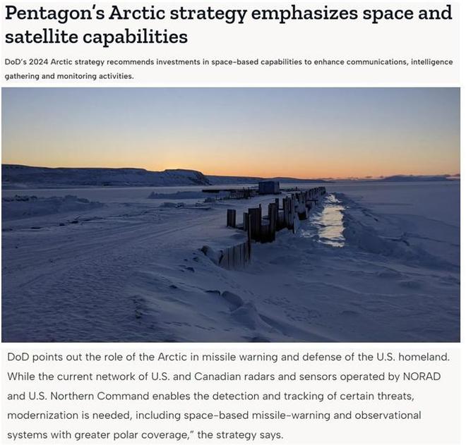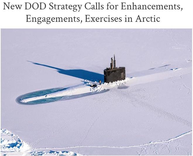 美國(guó)國(guó)防部發(fā)布的最新報(bào)告將北極描述為對(duì)美國(guó)"具有重要戰(zhàn)略意義的地區(qū)",戰(zhàn)略意義在于"通往美國(guó)國(guó)土的北部通道"和"重要的美國(guó)國(guó)防基礎(chǔ)設(shè)施"等。