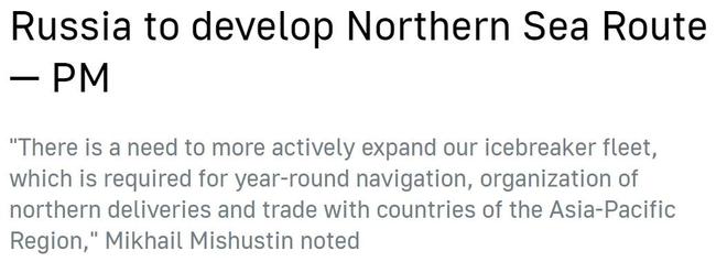 俄總理米舒斯京曾在政府會(huì)議上強(qiáng)調(diào),跨經(jīng)北極的北方海路對(duì)于向俄北部運(yùn)送物資、向世界市場(chǎng)輸送金屬和能源、進(jìn)行亞洲和歐洲之間的過(guò)境運(yùn)輸來(lái)說(shuō)都非常重要,尤其是在西方制裁之下更是如此。因此,"有必要更積極地?cái)U(kuò)大俄羅斯的破冰船隊(duì)"。