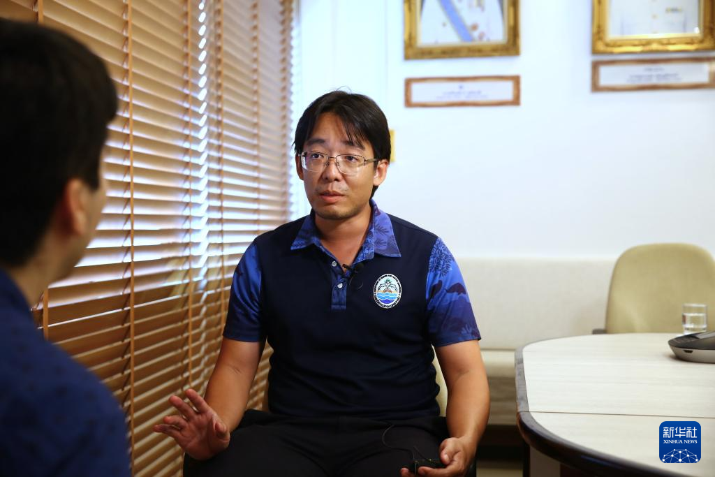 7月23日,中泰實驗室泰方主任、泰國海洋與海岸帶資源局漁業(yè)專家差林拉·桑馬尼在泰國普吉接受新華社記者采訪。新華社記者 孫瑋彤 攝