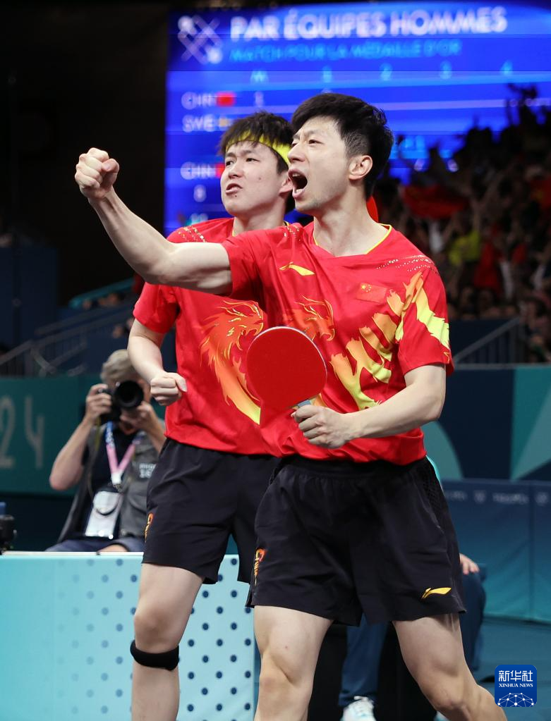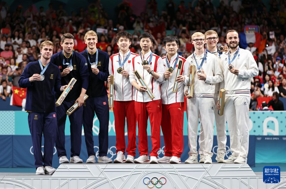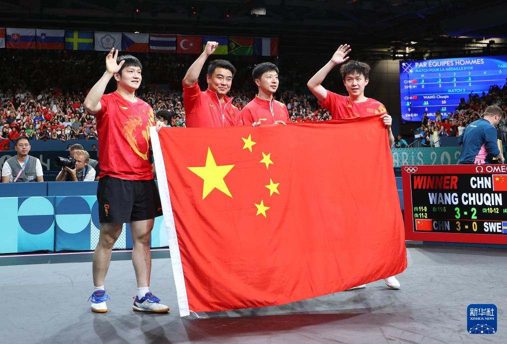 當日,在巴黎奧運會乒乓球男團金牌賽中,中國隊戰(zhàn)勝瑞典隊,獲得冠軍。