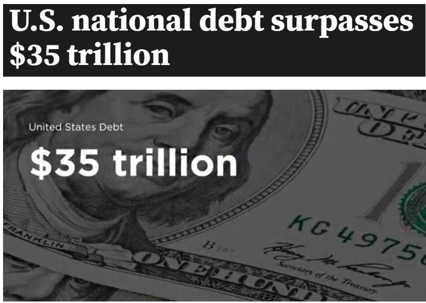 根據(jù)美國(guó)財(cái)政部近日發(fā)布的最新數(shù)據(jù),美國(guó)國(guó)債已超35萬億美元。目前,美國(guó)債務(wù)總額比七國(guó)集團(tuán)中其他六國(guó)的國(guó)債總和還要多出15%。