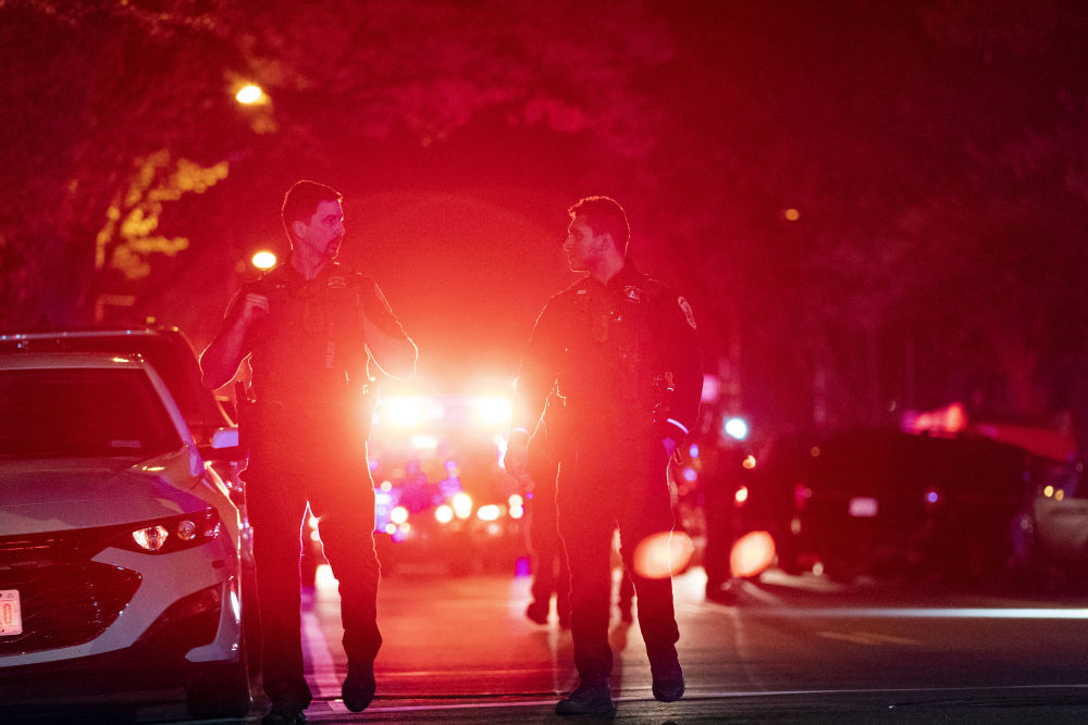 2022年4月22日,警察在美國首都華盛頓西北部一處街區(qū)發(fā)生的槍擊事件現(xiàn)場(chǎng)工作。新華社記者劉杰攝