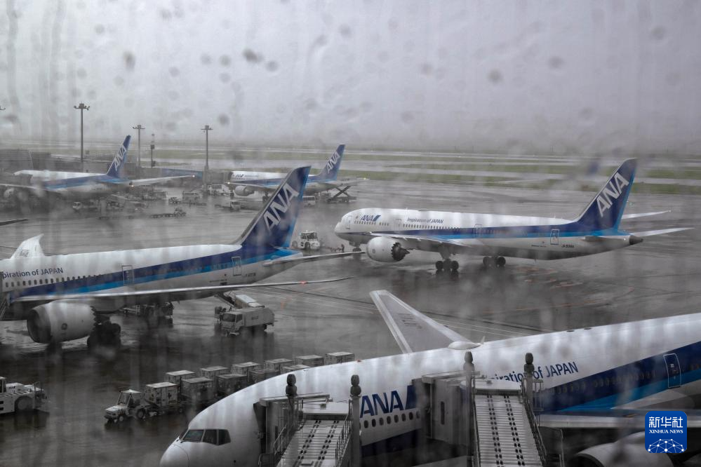 這是8月16日在日本東京羽田機(jī)場拍攝的全日空航空公司客機(jī)。新華社記者 張笑宇 攝