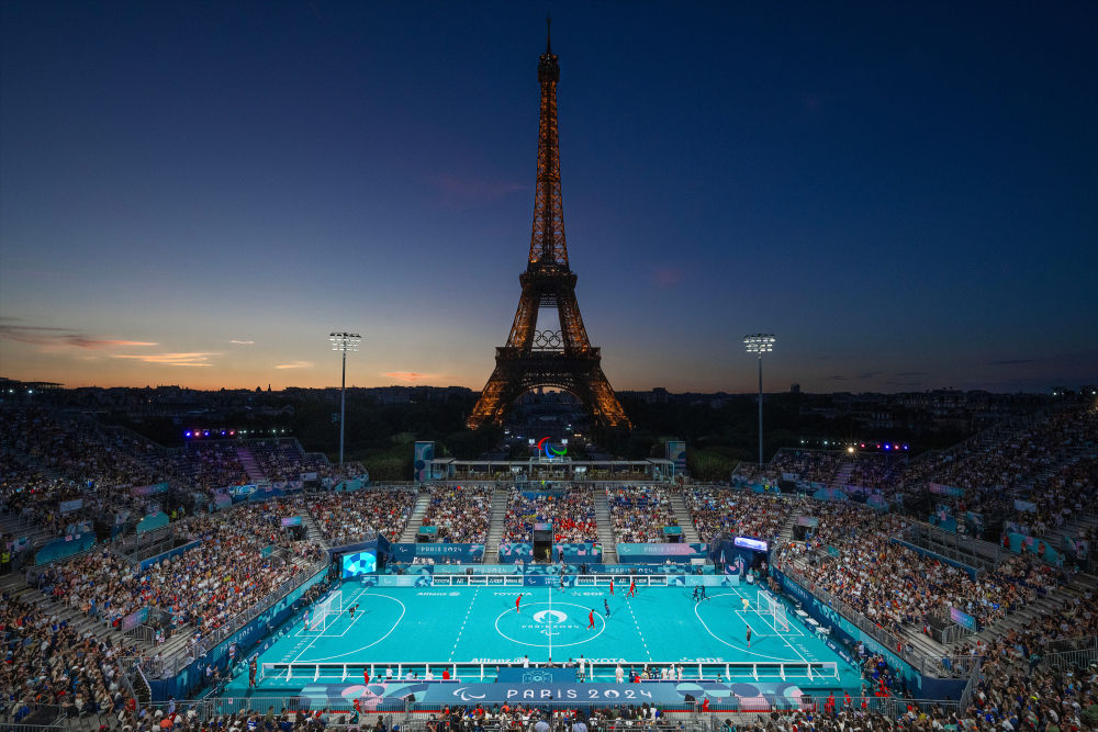 這是9月1日拍攝的巴黎殘奧會盲人足球比賽現場。新華社記者 熊琦 攝