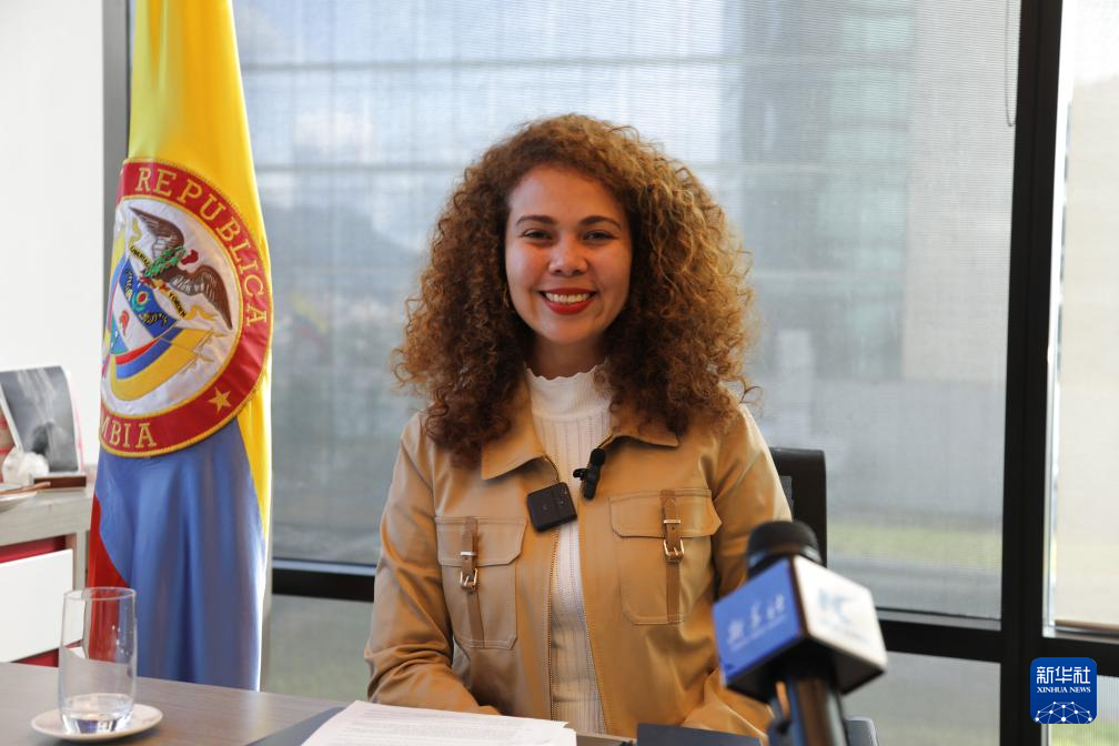9月12日,哥倫比亞科學(xué)、技術(shù)和創(chuàng)新部部長(zhǎng)耶塞尼婭·奧拉亞·雷克內(nèi)在波哥大接受新華社記者專訪。新華社記者 周盛平 攝
