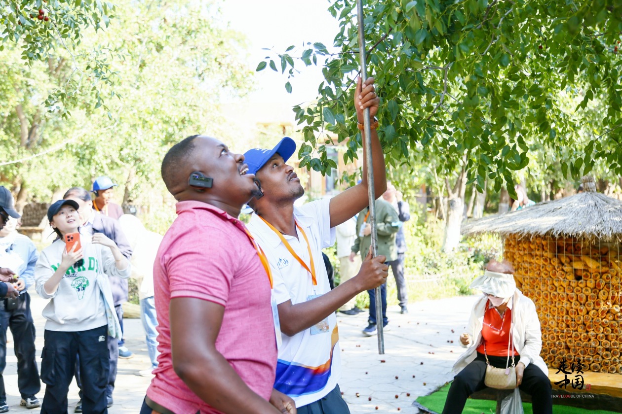 外國(guó)記者嘗試打棗