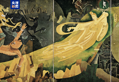 中國畫家楊曉陽的作品《遠古足音》描繪了嫦娥奔月,寄托了中華民族千年飛天夢,而中國航天事業(yè)的發(fā)展正將這一夢想化為現(xiàn)實,書寫新的傳奇。