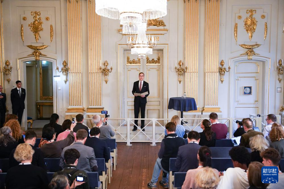10月10日,瑞典文學(xué)院常任秘書馬茨·馬爾姆在斯德哥爾摩舉行的新聞發(fā)布會(huì)上揭曉獲獎(jiǎng)?wù)?。新華社記者 彭子洋 攝