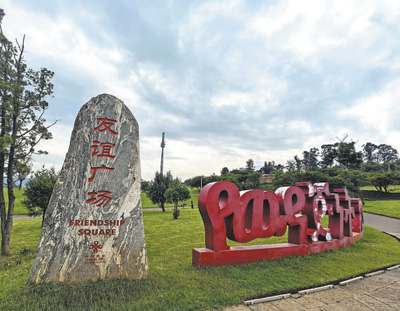 鐫刻著“友誼廣場”幾個(gè)中文大字的泰山石碑矗立在半山坡一片平地上。