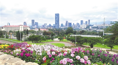 友誼廣場入口,外墻上四個(gè)遒勁有力的漢字“友誼廣場”躍入眼簾,紅底白字,分外醒目。走進(jìn)其中,目光所及皆是綠色,樹木蔥蘢、青草葳蕤,頓覺神清氣爽,仿佛踏入一個(gè)天然氧吧。廣場依山而建,高處連綿起伏的琴弦狀花帶,如同一條條彩帶在空中飛舞;半山腰空曠的廣場上,可遠(yuǎn)眺中央商務(wù)區(qū)的城市景觀;山腳的人工湖波光粼粼,倒映著藍(lán)天白云和綠樹紅花……
