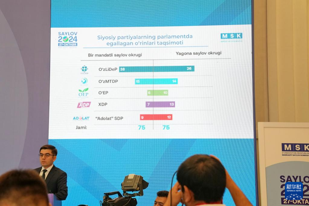 10月28日,烏茲別克斯坦中央選舉委員會在首都塔什干舉行新聞發(fā)布會宣布烏最高會議立法院(議會下院)選舉初步結果。新華社發(fā)(扎法爾攝)