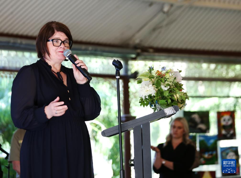 11月14日,在澳大利亞阿德萊德動(dòng)物園,南澳大利亞州旅游與多元文化部長(zhǎng)佐伊·貝蒂森在歡送活動(dòng)上致辭。新華社記者 馬平 攝