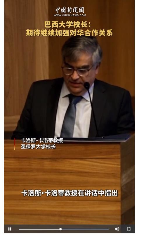 近日,“中巴青年故事會”活動在巴西圣保羅大學(xué)舉行,圣保羅大學(xué)校長卡洛斯·卡洛蒂教授(Carlos Carlotti)在講話中指出,巴中兩國有許多共同之處,在經(jīng)濟(jì)、農(nóng)業(yè)、綠色能源、文化、電影等領(lǐng)域,合作潛力巨大,期待未來進(jìn)一步加強(qiáng)對華合作。(制作 林卓瑋 攝像 郝云暉)