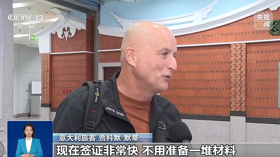 意大利旅客 賈科默·默蒂:現(xiàn)在簽證非常快,不用準(zhǔn)備一堆材料。現(xiàn)在非常方便,非常好。因?yàn)檫@樣節(jié)省了很多手續(xù),之前需要很多的文件,非常復(fù)雜?,F(xiàn)在很快,因?yàn)槭敲夂灐?/p>